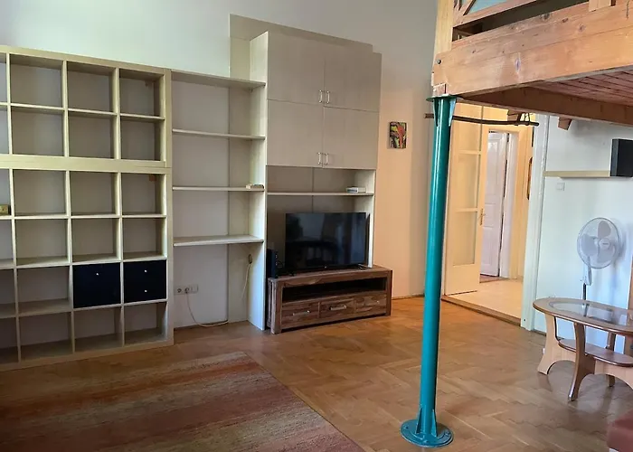 Az apartman Budapest a VII. körzetében fekszik, a Szimpla Kert romkocsmától körülbelül 30 percnyi sétára.